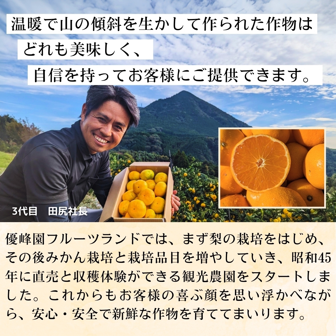 観光農園「優峰園フルーツランド」から、『秀品!』『化粧箱入』で甘みと酸味のバランスが抜群な河内みかんを期間限定で販売いたします!
