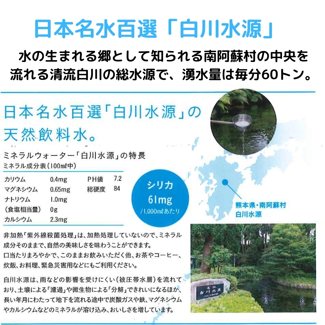 日本名水百選にも選ばれた白川水源のミネラルウォーターです。