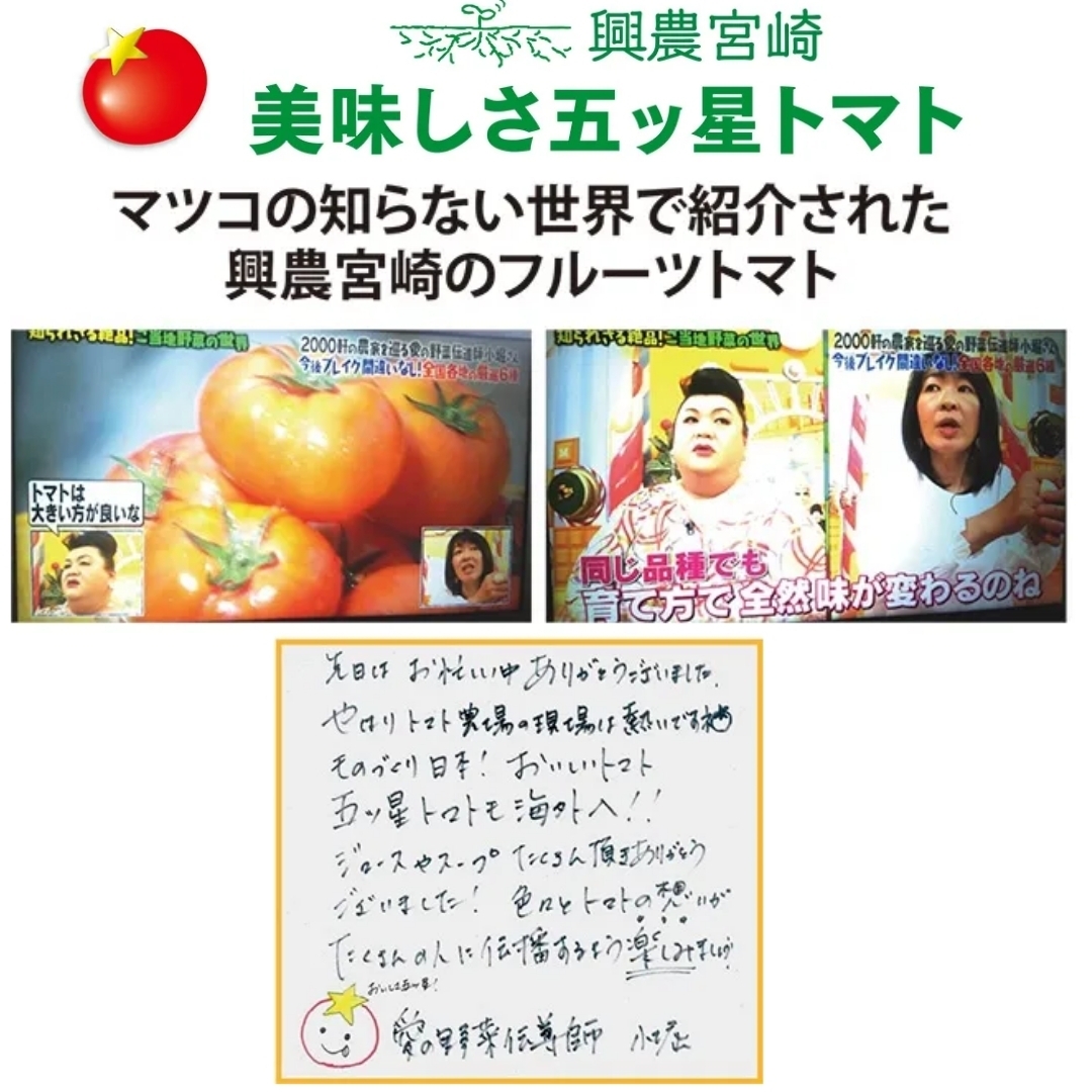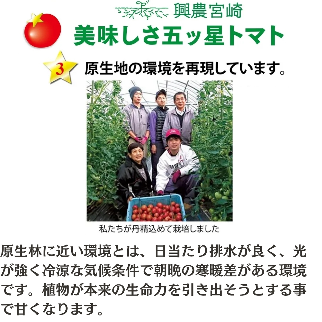 ~トマトそのものの味を大切にしてつくった興農宮崎の「美味しさ五ッ星トマト」をお届け!~