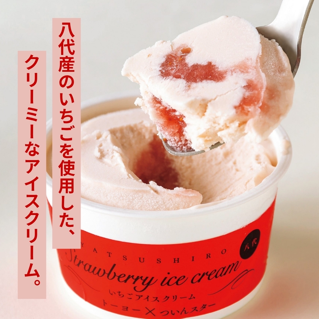 八代産の苺を使用したアイスクリームは、新鮮な苺の甘酸っぱさが口いっぱいに広がり、ほんのりとしたクリーミーな口当たりが心地よさを誘います。