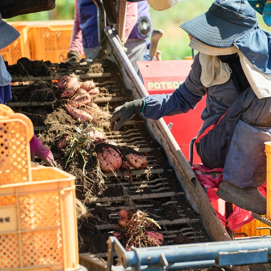 私たちは、苗から芋、お菓子までをすべて自社で製造し販売しています。