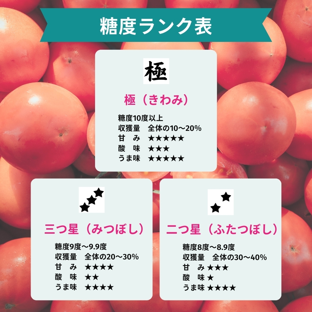 | 糖度を選ぶ | 極(糖度10度以上) 三つ星(糖度9度~9.9度) 二つ星(8度~8.9度) |