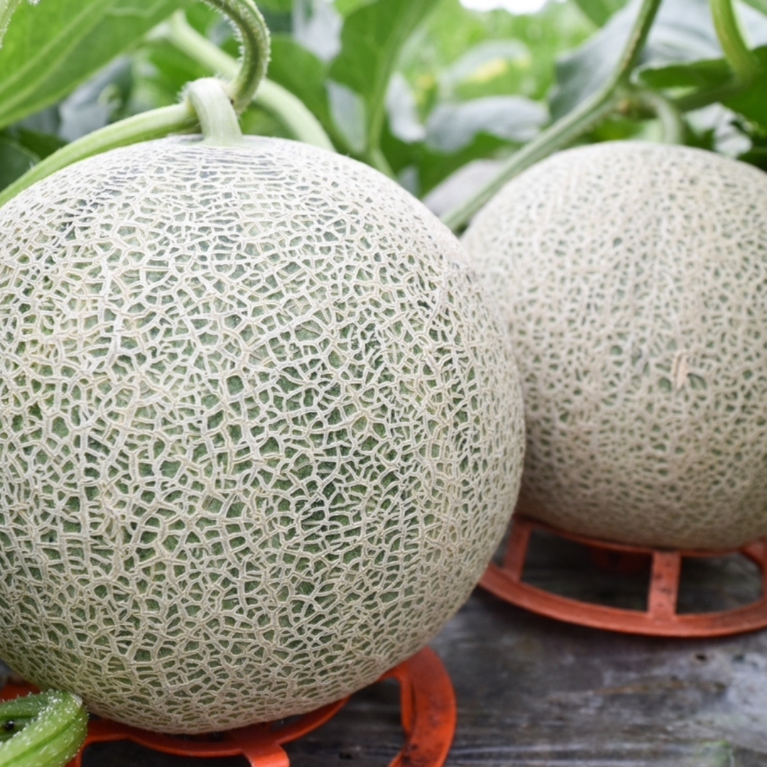 黄緑色の果肉で甘味が強い、青肉系ネットメロンです。