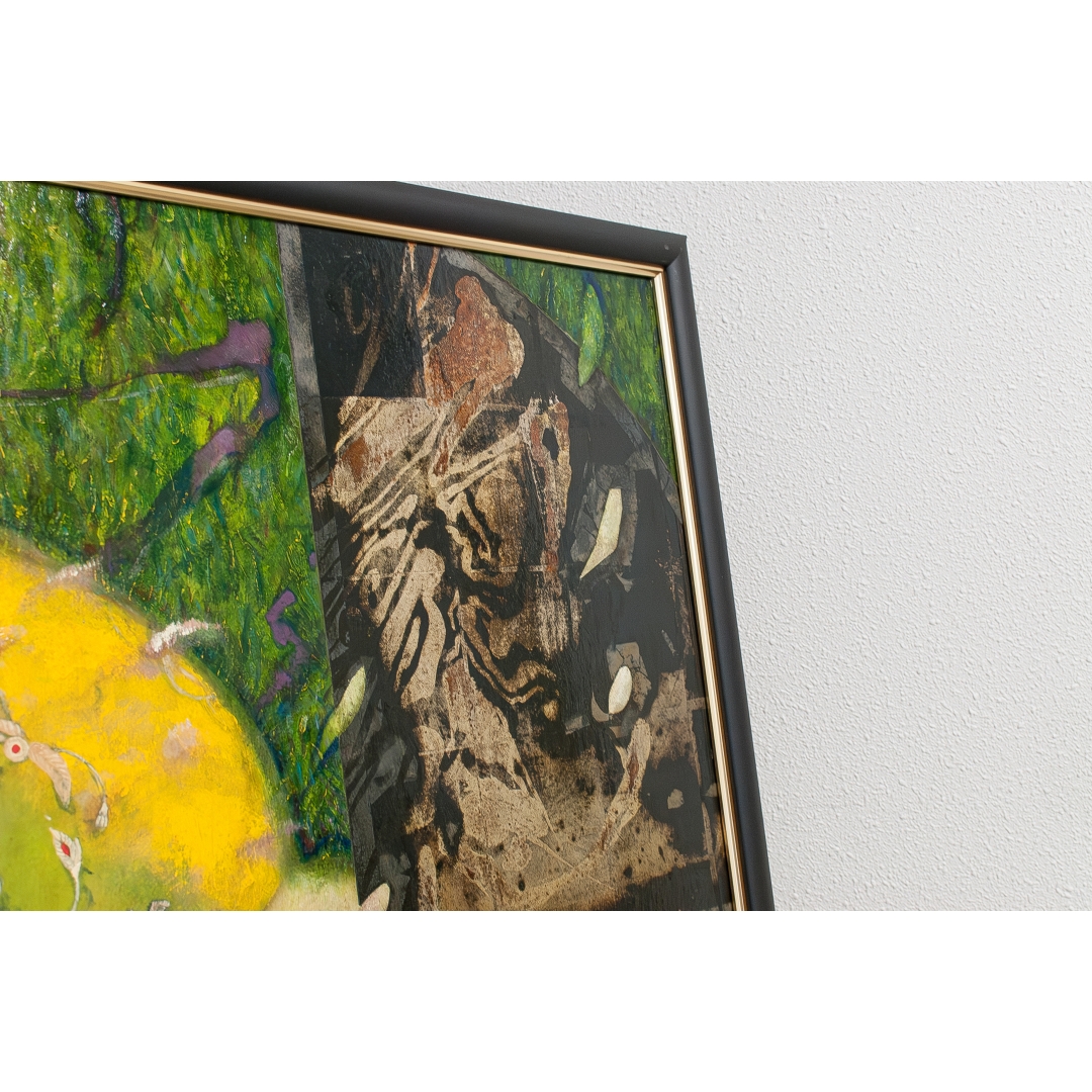 蜂が花の上を歩いて回る。蜂にとっても花にとっても幸せな時間を表した作品である。