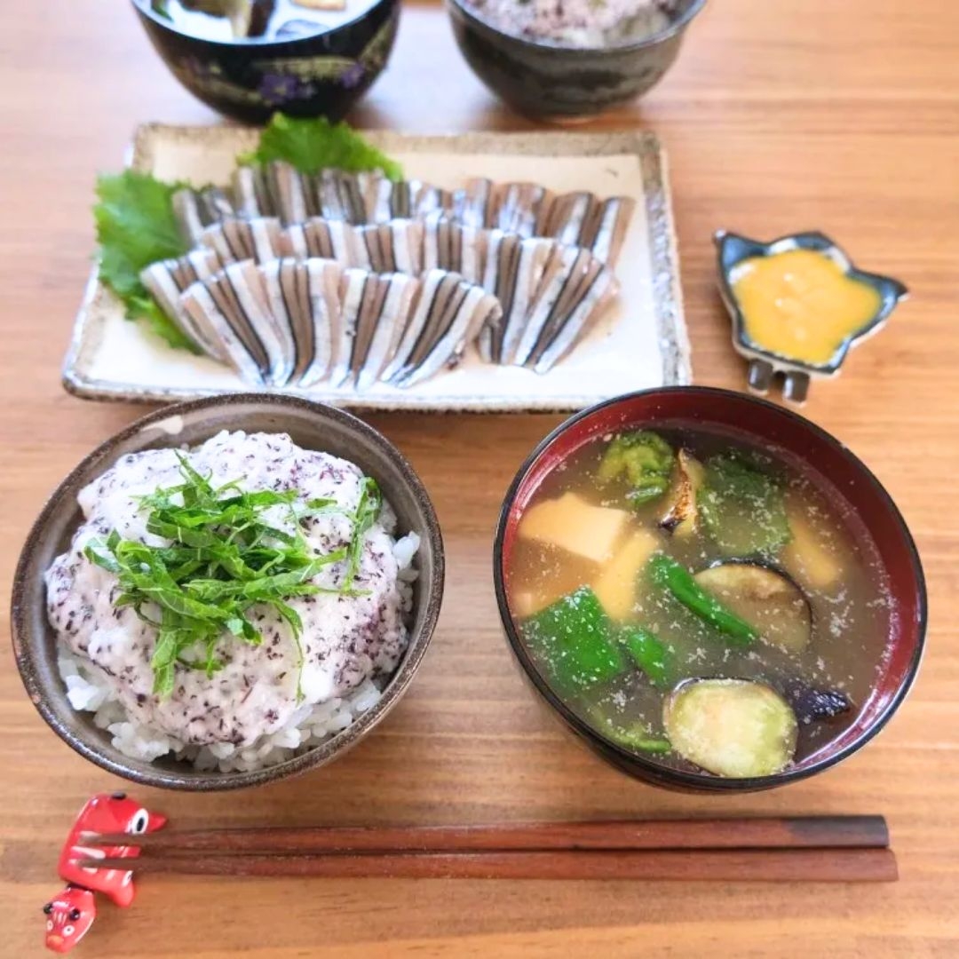 割合1:1の醤油とみりんに、キビナゴのお刺身を漬けこんで、ごはんの上にのせて漬け丼にします。