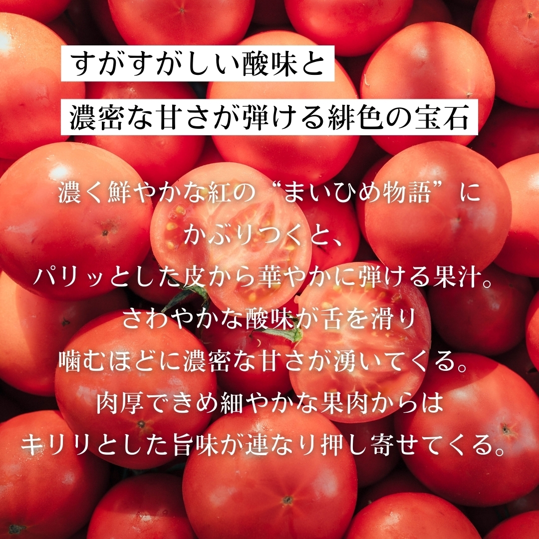 “プレミアムトマト「まいひめ物語」を100%、それだけ。”