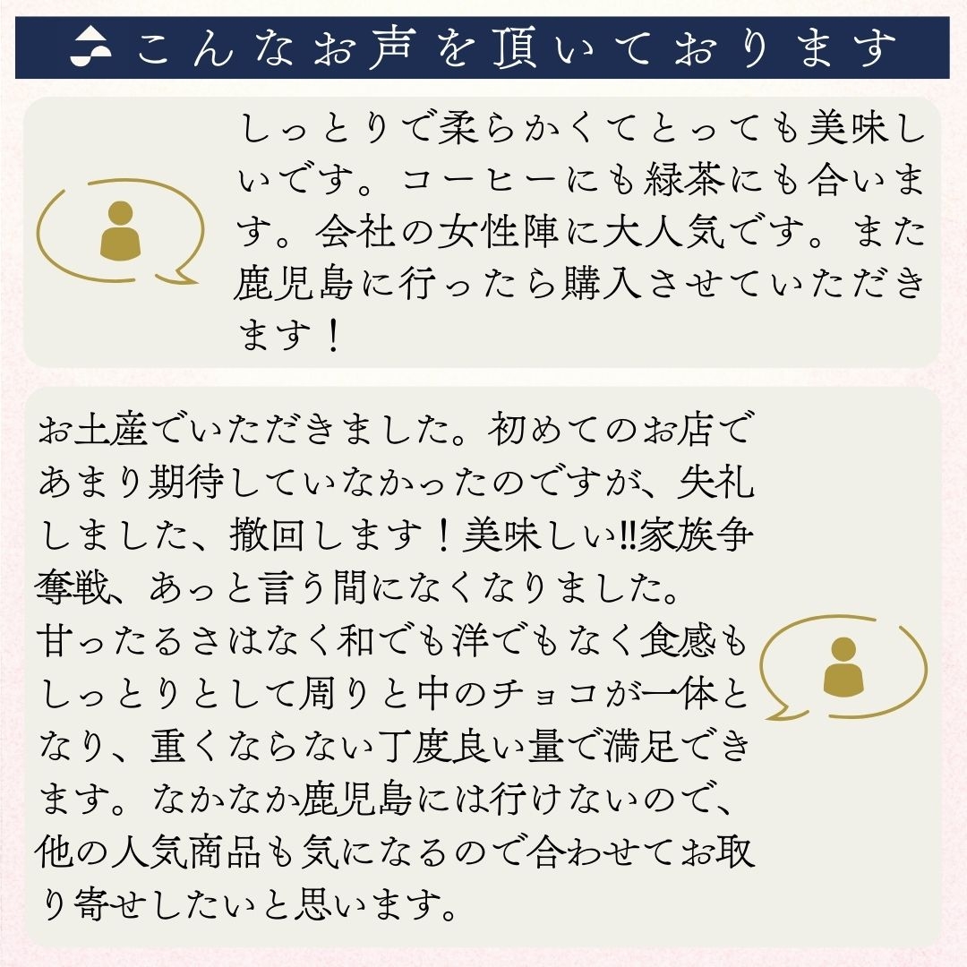 霧島茶の風味とチョコレートの甘さのバランスが良く、鹿児島土産にぴったりです。