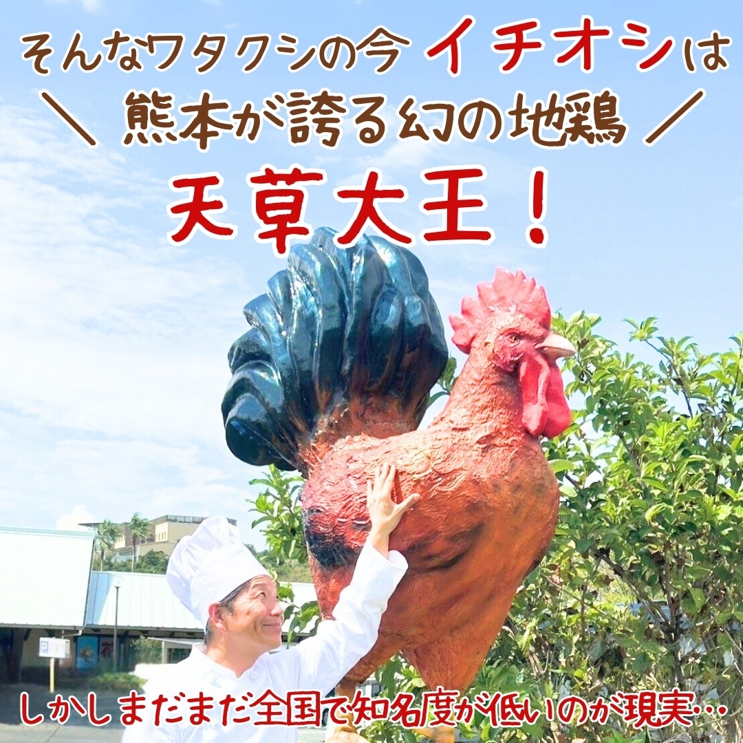 およそ70年の時を経て復元を遂げた熊本の幻の地鶏。硬すぎず柔らかすぎない絶妙な歯ごたえ、弾力とジューシーさが特徴。 おいしさと質の良さ、希少性で瞬く間に人々を虜にし、現在はホテルやレストラン、飲食店など一流の食の世界でその人気を博しています。