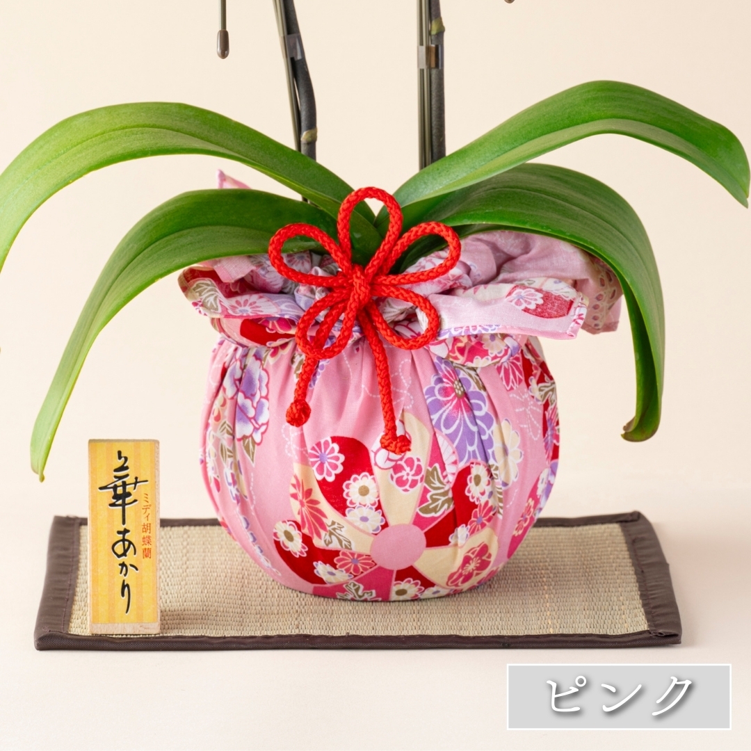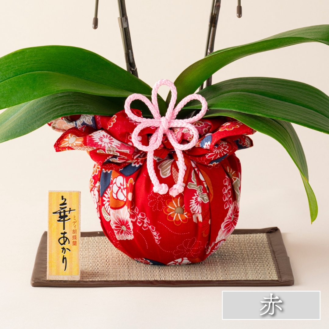 ✨鉢を華やかな風呂敷で包み、水引きなどの装飾でアレンジしています。