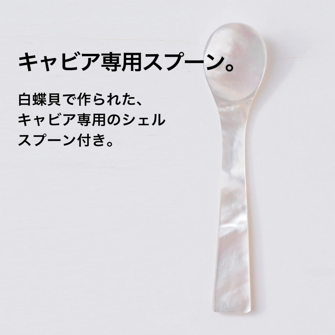 ・セット内容 :キャビア12g、カラフルブリニ 4種(日向夏・ほうれん草・玉ねぎ・ほうじ茶)各2枚、高千穂バター(無塩)8g、贈答用化粧箱、キャビア専用 シェルスプーン