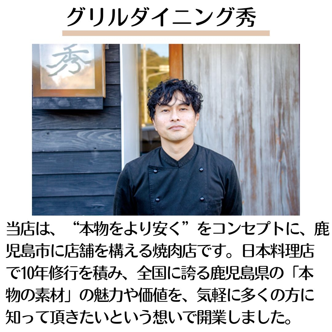 グリルダイニング秀は、日本料理を10年間修業した店主が鹿児島で開業した店舗です。