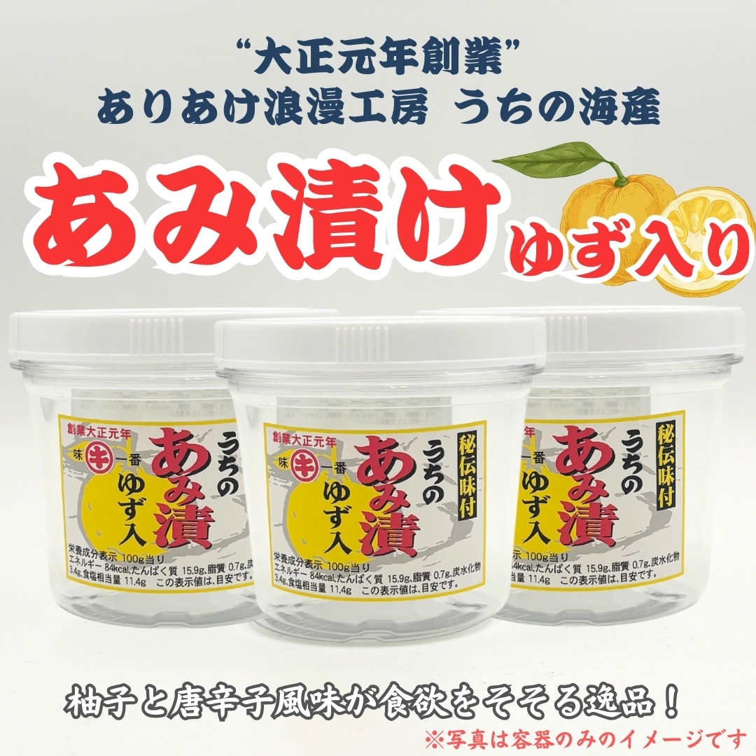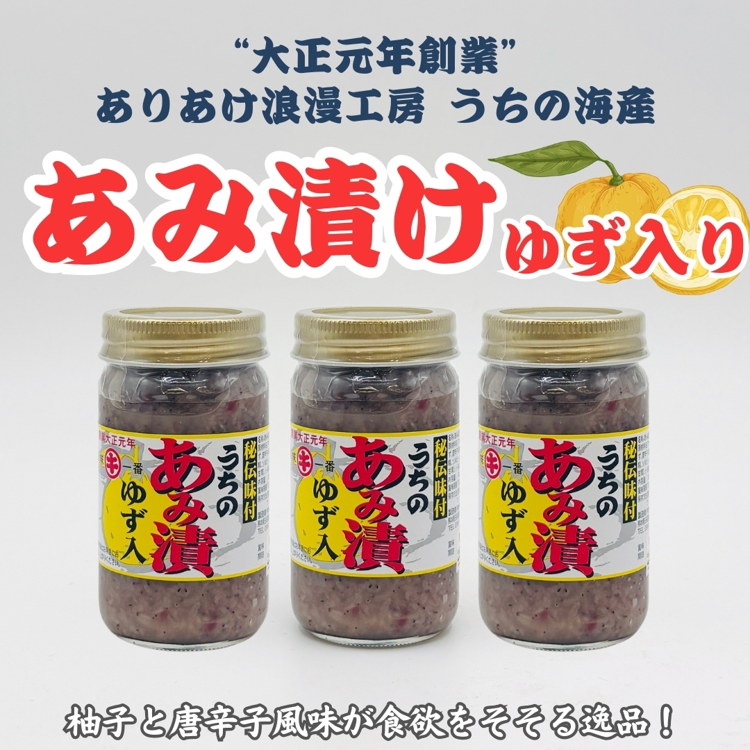 ゆず入りは、あみ漬をゆずと唐辛子で味付けし、塩度を抑えたマイルドな味わいが特徴です。