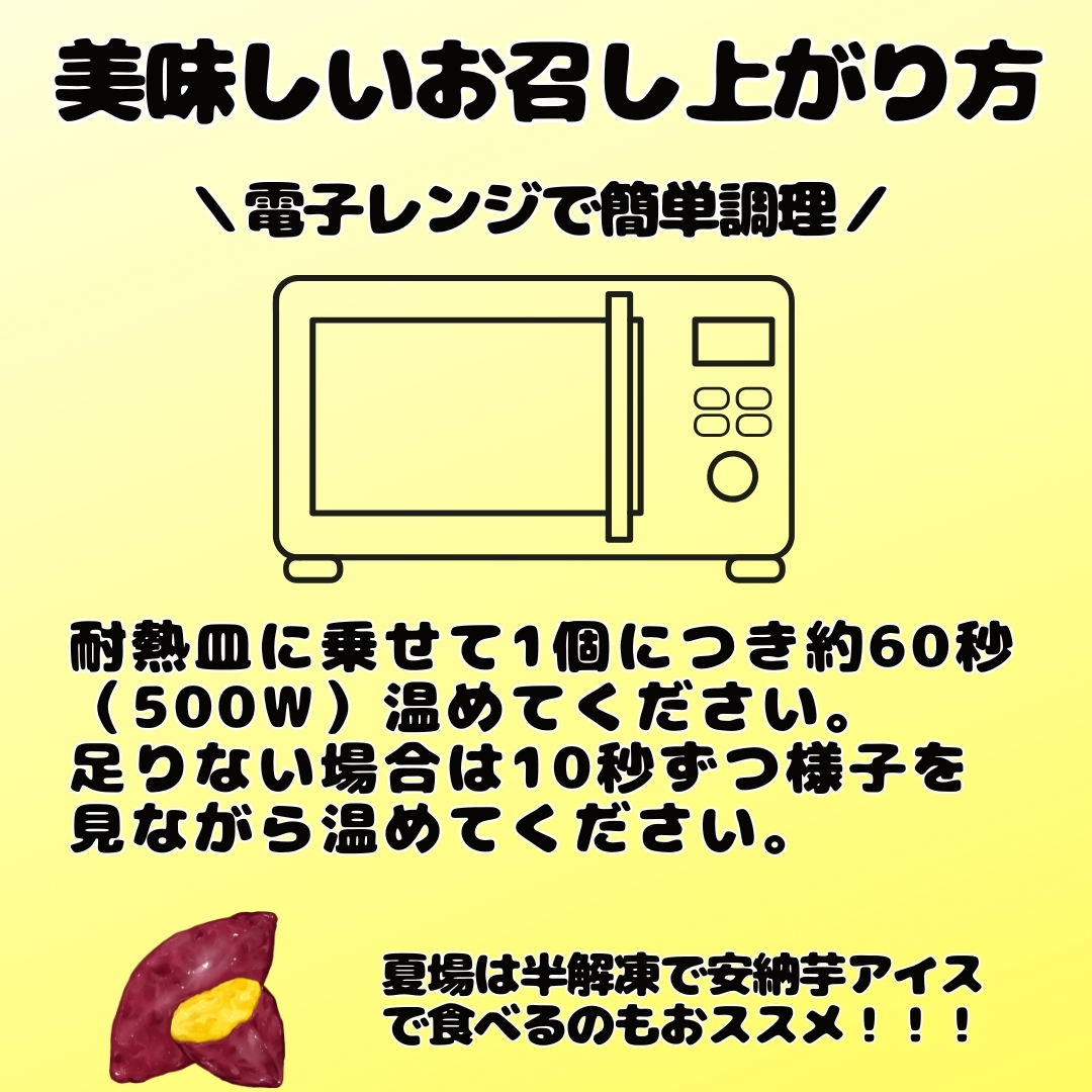 冬は温めて焼き芋に、夏は半解凍で安納芋アイスとして一年中お楽しみいただけます。