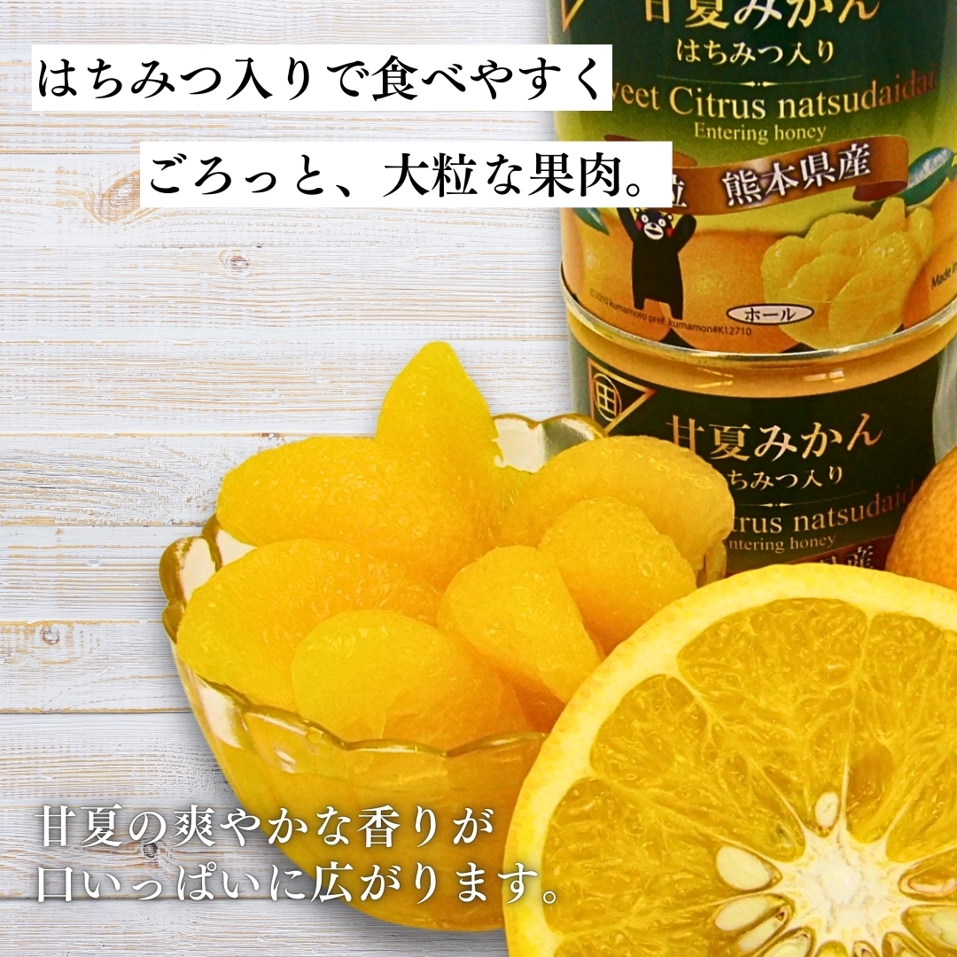 甘夏缶詰:甘夏みかん(国産)、砂糖・ぶどう糖加糖液糖、はちみつ/酸味料