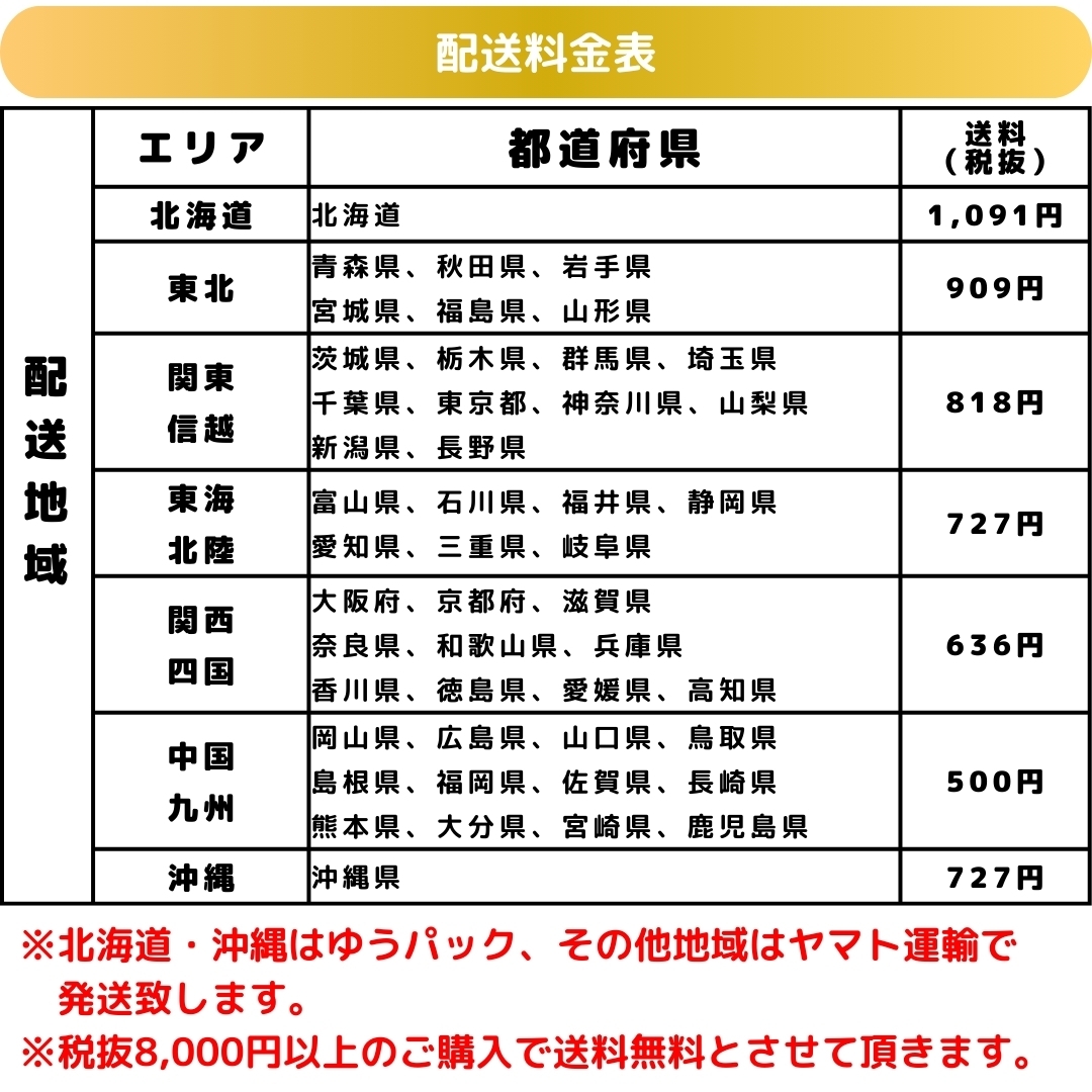 ・税抜8,000円以上お買い上げの場合、送料は無料になります。