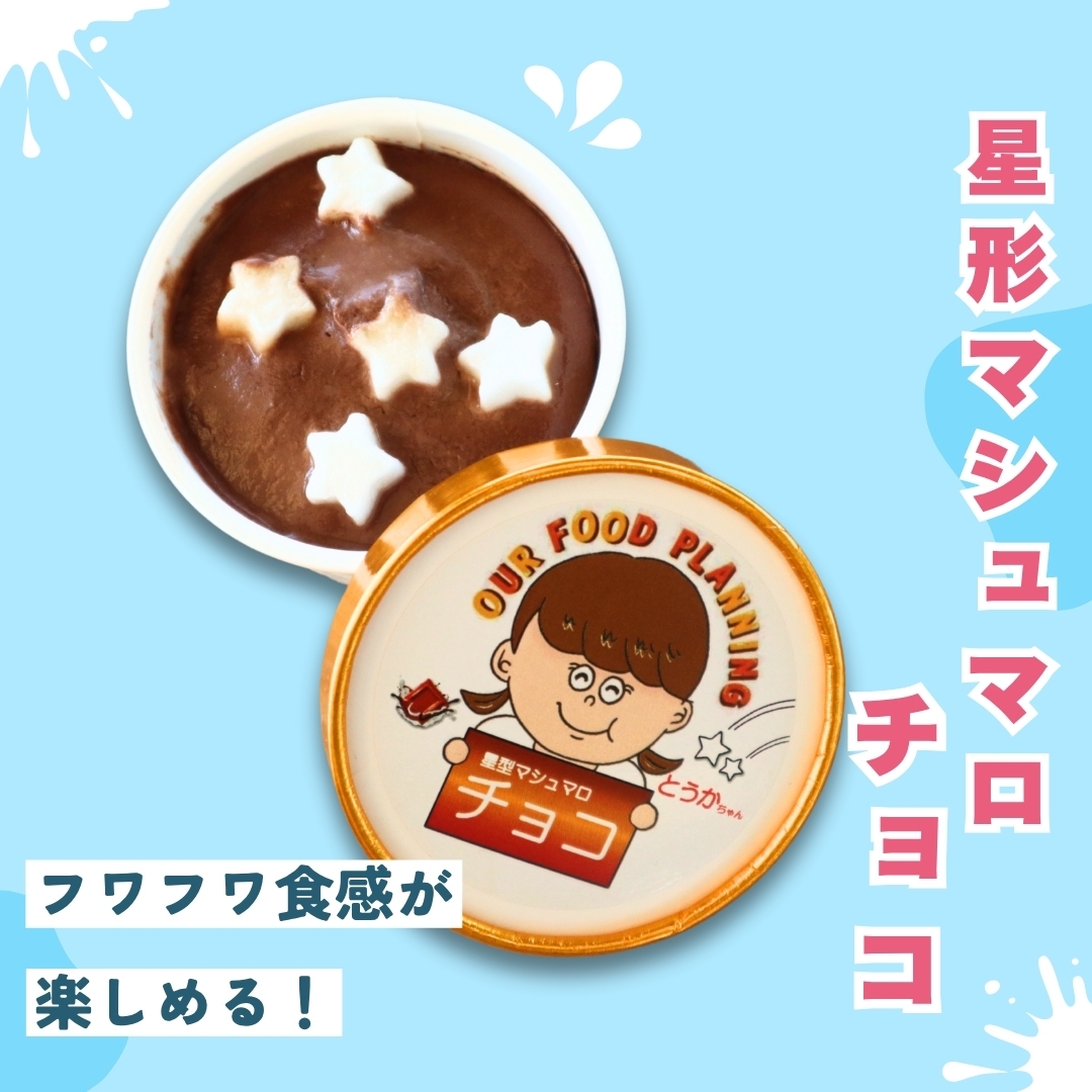チョコアイスクリームに、可愛い星形のマシュマロがのっており、マシュマロのフワフワ食感も楽しめます。