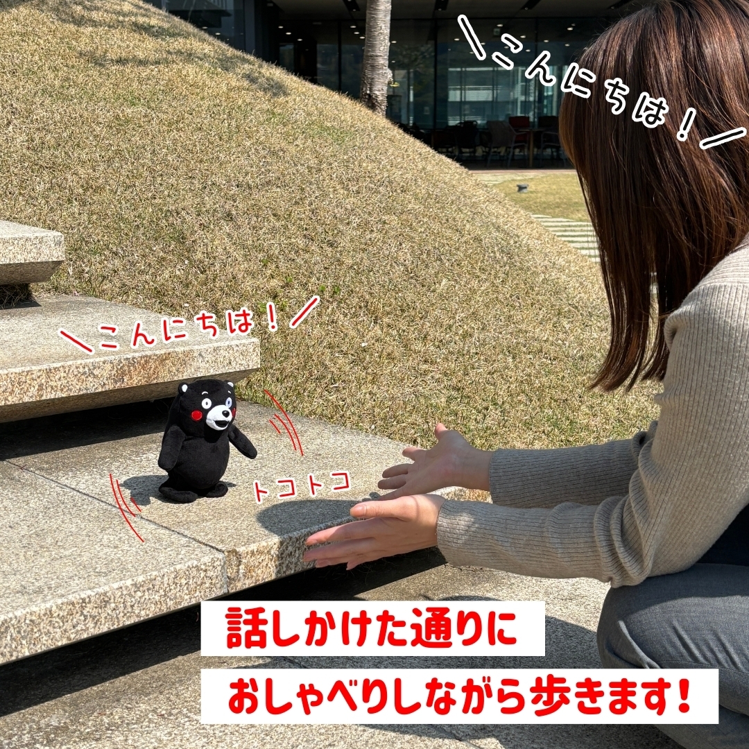 大人気キャラクター「くまモン」が、あなたの言葉をマネしておしゃべりしながら、かわいく歩き出す!
