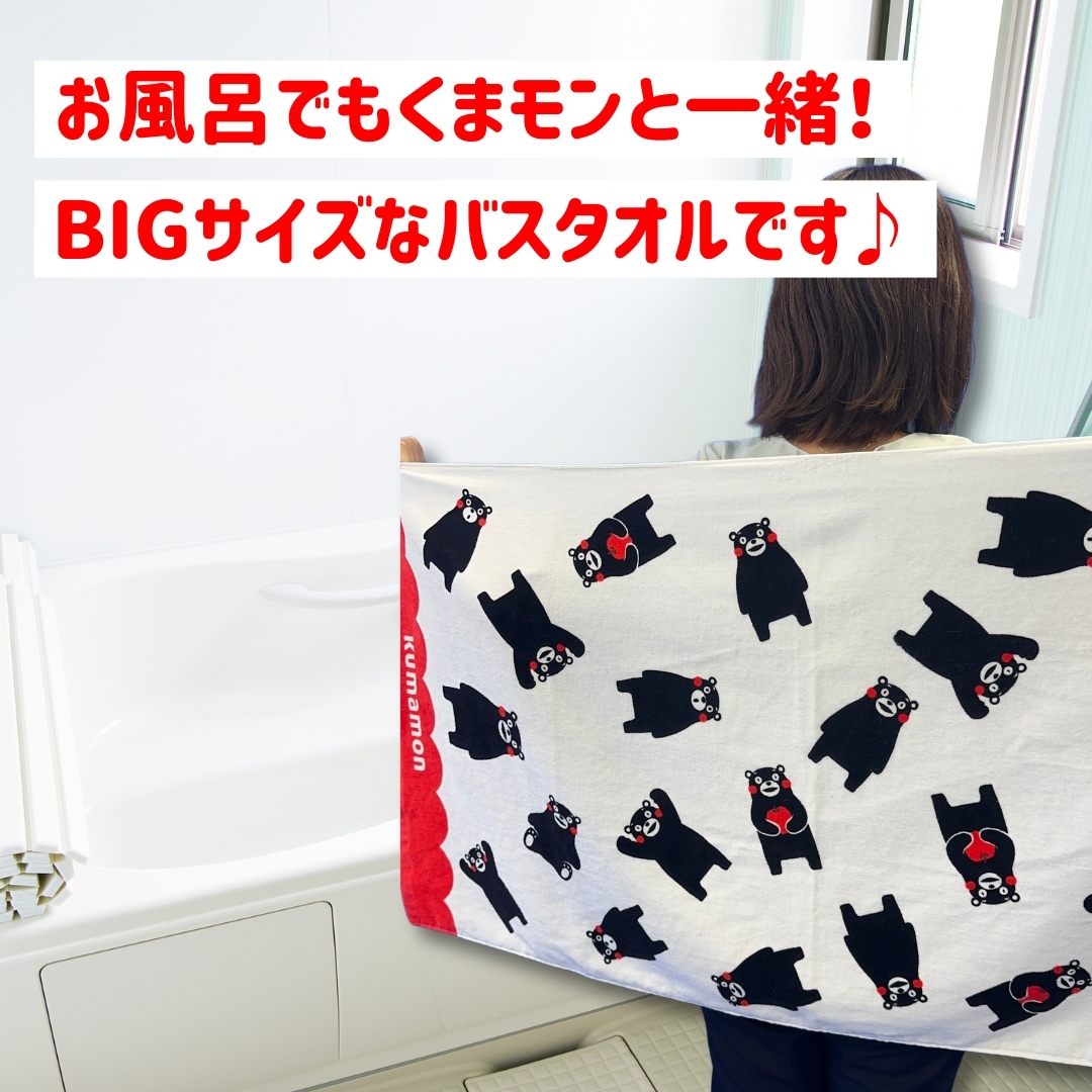 可愛いくまモンがいっぱい!総柄デザインのバスタオル。吸水性もバツグンで、普段使いからギフトまで幅広く活躍します。