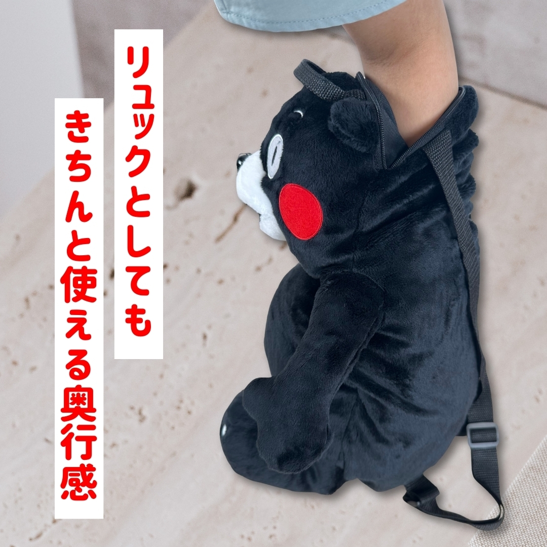 背負うとくまモンとお出かけ気分♪ 可愛いぬいぐるみタイプのリュックは、お子さまにも大人にも人気のアイテムです。