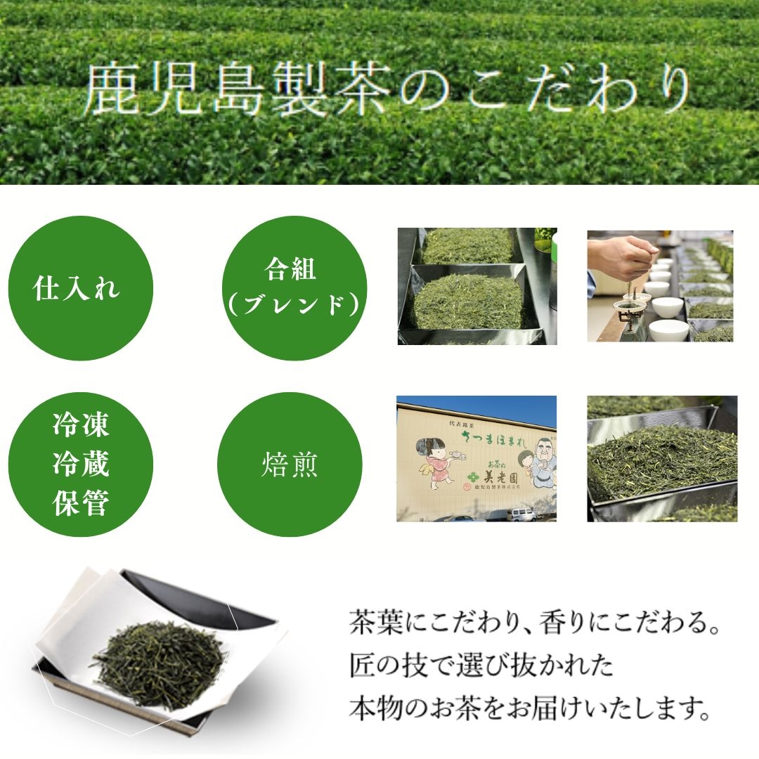 全国有数のお茶産地として知られる鹿児島県南九州市産のお茶は旨みと渋みがほどよく調和した力強い味が特徴です。しっかりとしたコクをお楽しみください。