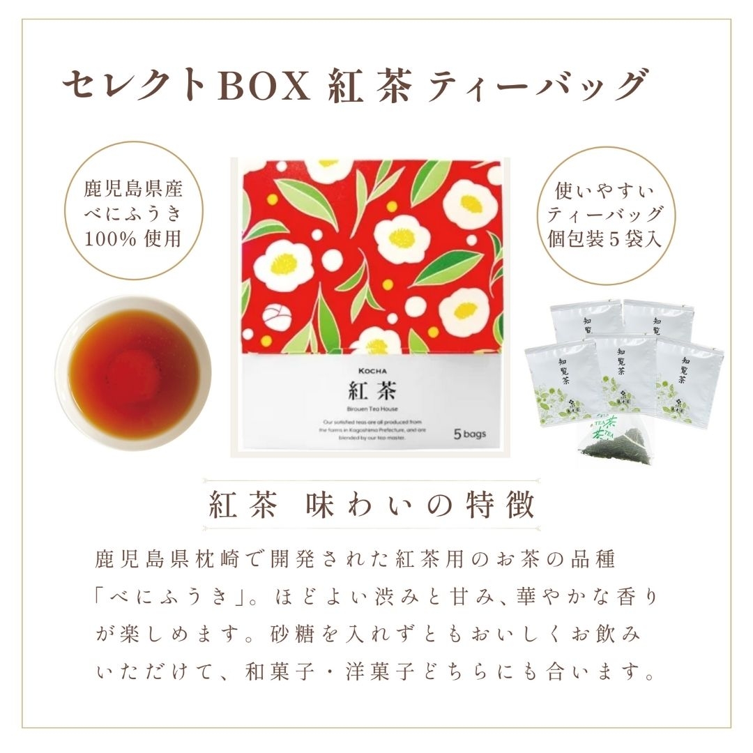 セレクトBOXは、鹿児島県産の知覧茶・ほうじ茶・紅茶を使用した、3種のティーバッグです。
