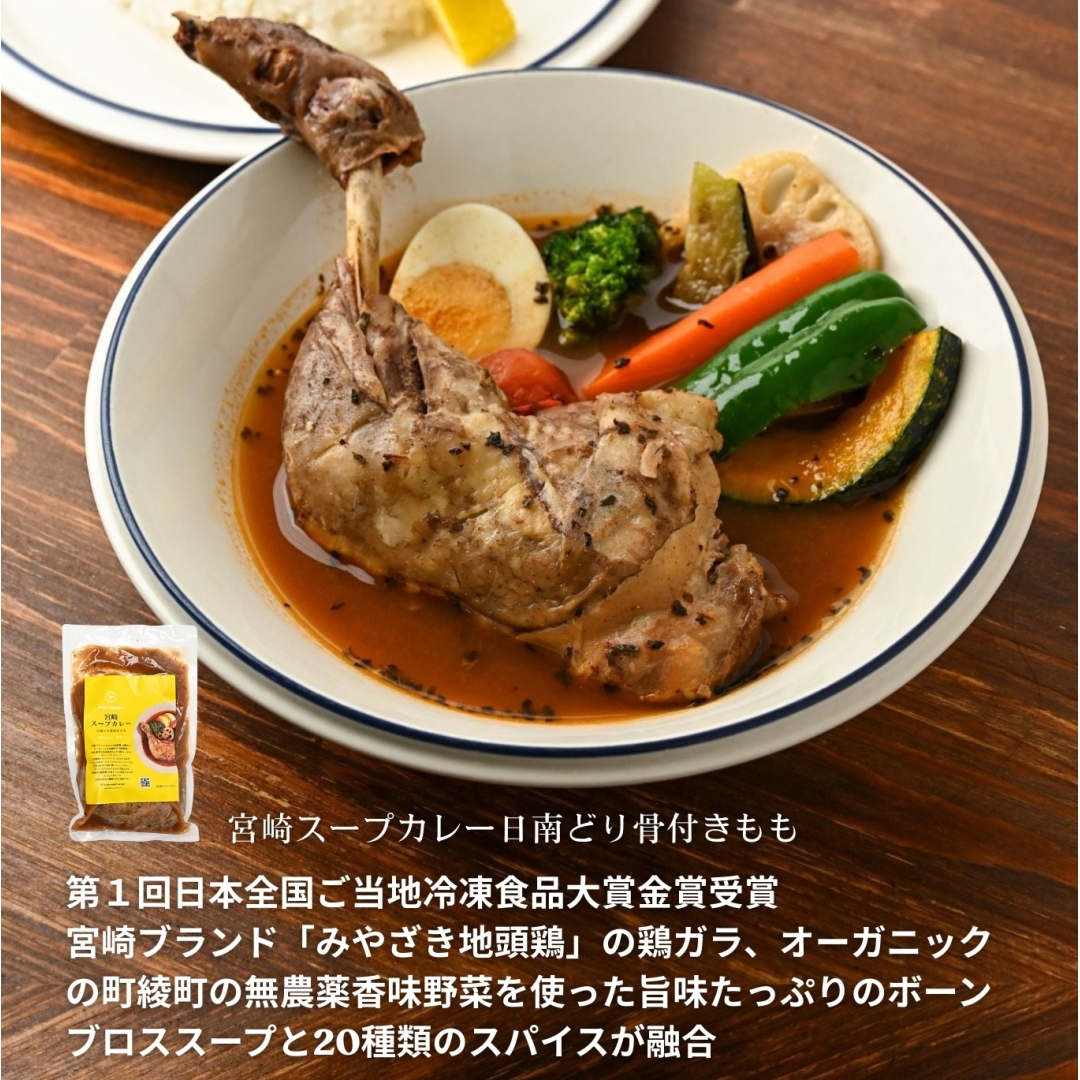 宮崎ブランド「みやざき地頭鶏」の鶏ガラをベースに、オーガニックの町「綾町」の無農薬香味野菜を使った旨味たっぷりのボーンブロススープと20種類のスパイスが融合したグルテンフリーの身体に優しいスープカレーに仕上げました。
