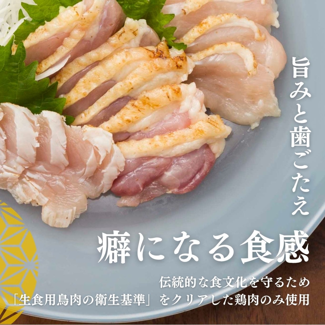 鹿児島を代表する郷土の味覚「鳥刺し」!!安心・安全に食べられるように鹿児島県の独自の基準「生食用鳥肉の衛生基準」をクリアした鳥刺しをお届けします。