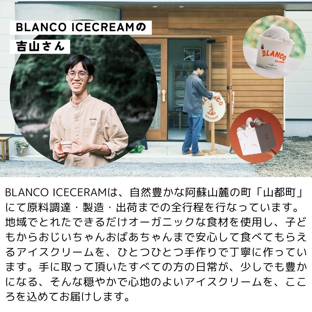 雄大な阿蘇の大地で育った乳牛からできる良質なミルクアイスをベースに、山都町を中心とした地域で採れるできるだけオーガニックな食材を使用。