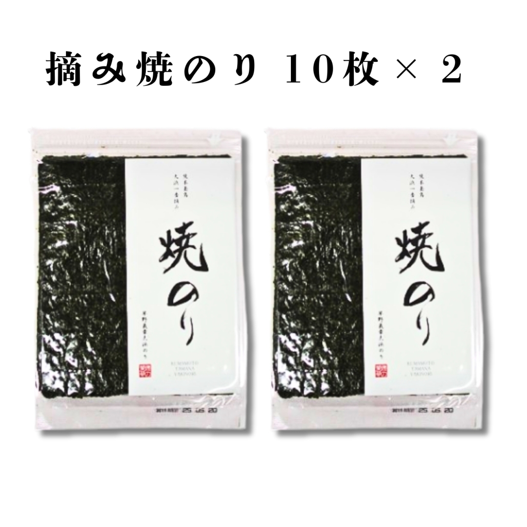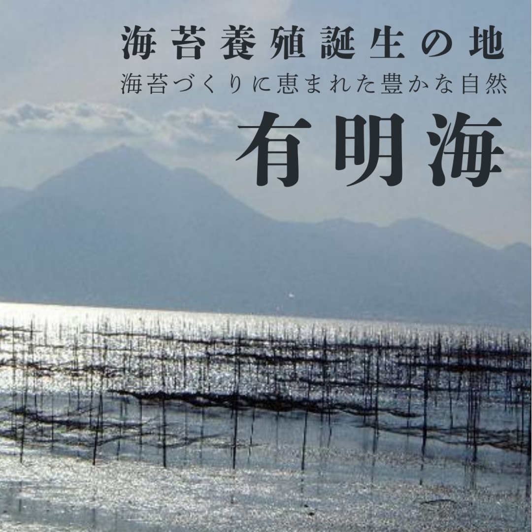 熊本県北部菊池川河口大浜町にて生産された、旨味たっぷりの一番摘み海苔を、焼のり・乾しのり・味付けのり・塩のりに加工しました。有明海産一番摘みのりの風味と香りが抜群です。