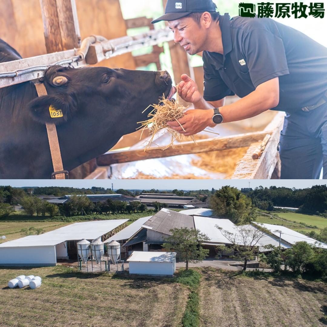 - 藤原牧場は宮崎県の高鍋町にある小高い山の上にあり、専用ハーブ飼料を与えた「みやざきハーブ牛」の飼育を行っています。また、飼育場に隣接して、精肉加工場やレストランを運営し、生産者自ら「愛情を持って育てた命を美味しく食べてもらいたい」との想いで、加工・販売をしています。
